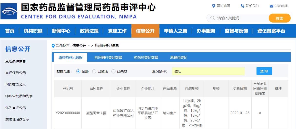 Recently, from the State Drug Administration Drug Evaluation Centre official website was informed that Shandong Chenghui Shuangda Pharmaceutical Co., Ltd. developed the API ativan hydrochloride (Registration No.: Y20230000440) on January 26, 2025 was approved for conversion to A (A indicates that the raw materials/excipients/packaging materials have been approved for use in the listed preparations). This good news not only reflects the excellent achievements of Chenghui Pharmaceutical in the field of API research and development, but also highlights the deep strength of our company in the production conversion and quality management, welcome new and old customers to negotiate and cooperate with us!