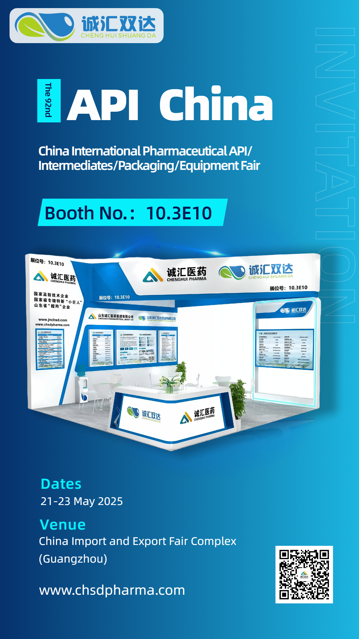 ?Shandong Chenghui Pharmaceutical Group sincerely invites you to visit ?the 92nd API China Exhibition? (Booth No.: 10.3E10) to explore new trends in pharmaceutical ingredients and manufacturing technologies, and discuss potential collaborations!
