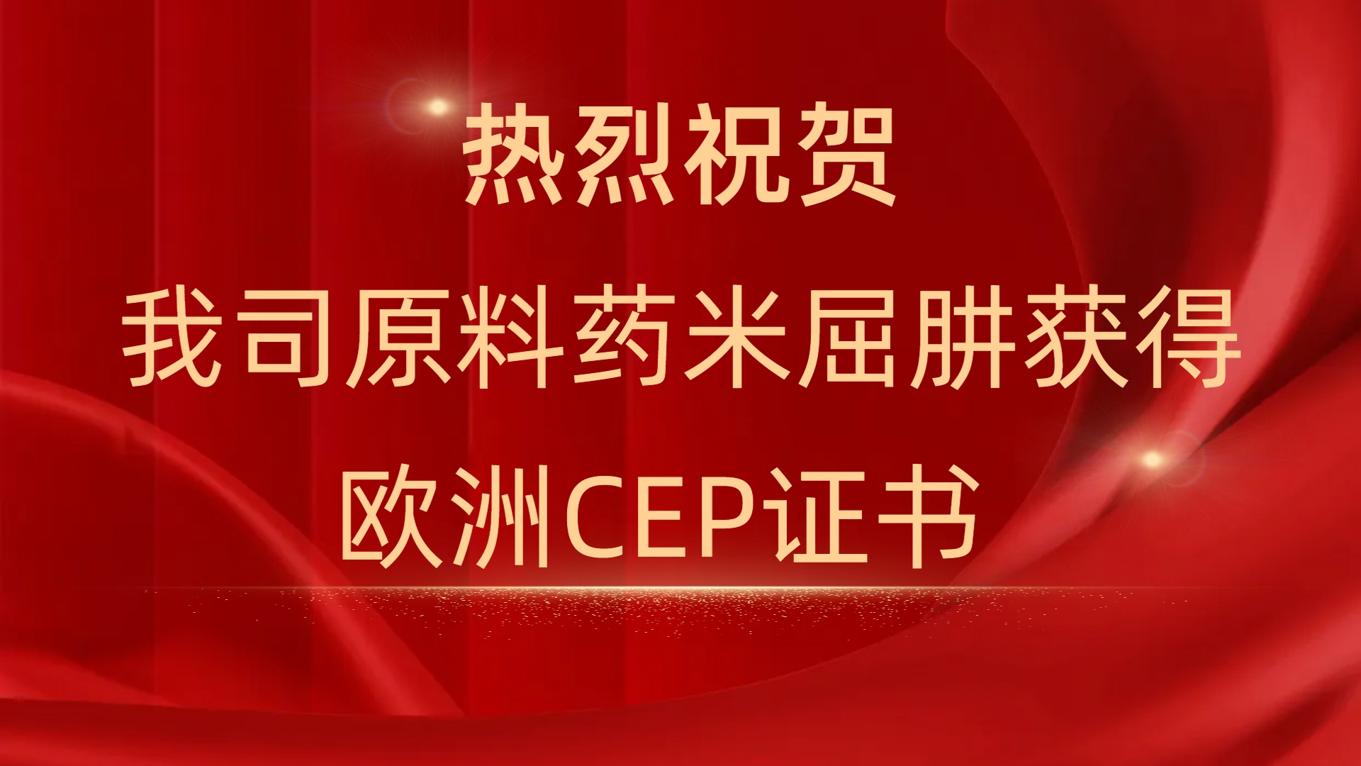 熱烈祝賀我公司原料藥米屈肼獲得歐洲CEP證書(shū)
