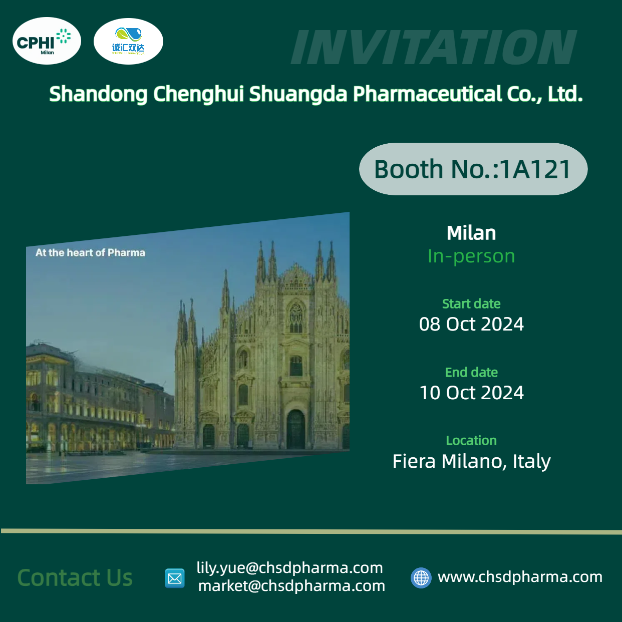山東誠(chéng)匯雙達(dá)藥業(yè)有限公司將攜局麻類(lèi)、抗病毒類(lèi)、心腦血管系統(tǒng)類(lèi)、抗腫瘤類(lèi)、消化道類(lèi)、降糖類(lèi)、獸藥等特色原料藥與高級(jí)醫(yī)藥中間體亮相米蘭CPHI制藥展,展位號(hào):1A121,誠(chéng)摯邀請(qǐng)海內(nèi)外客戶(hù)蒞臨展位,與我們的管理高層、營(yíng)銷(xiāo)團(tuán)隊(duì)進(jìn)行多維度的深入交流,共同參與這場(chǎng)全球各地醫(yī)藥原料行業(yè)從業(yè)者的年度大聚會(huì)。