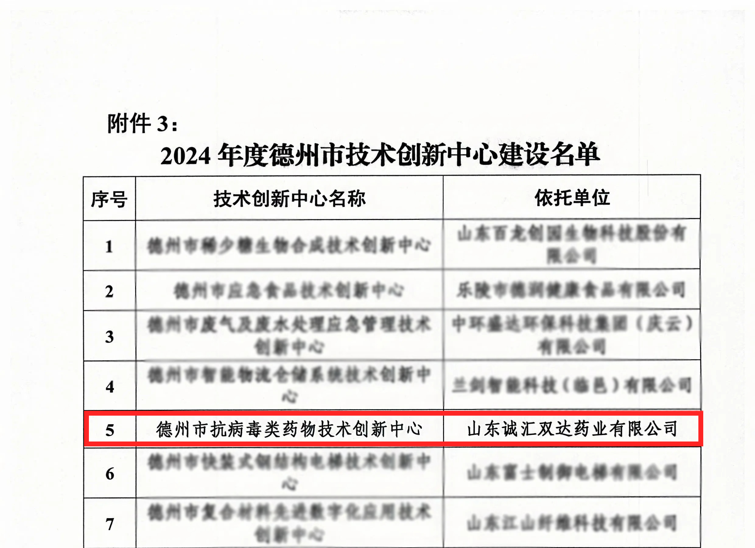 近日,德州市科技局發(fā)布了《關(guān)于批準(zhǔn)建設(shè)2024年度德州市科技創(chuàng)新平臺(tái)的通知》德科字〔2024〕98號(hào),建設(shè)名單中,我司申報(bào)的德州市抗病毒類藥物技術(shù)創(chuàng)新中心成功入選,這一喜訊不僅是對(duì)公司在技術(shù)研發(fā)和創(chuàng)新能力上的肯定,更是對(duì)誠(chéng)匯雙達(dá)藥業(yè)未來(lái)發(fā)展的激勵(lì)與鞭策。